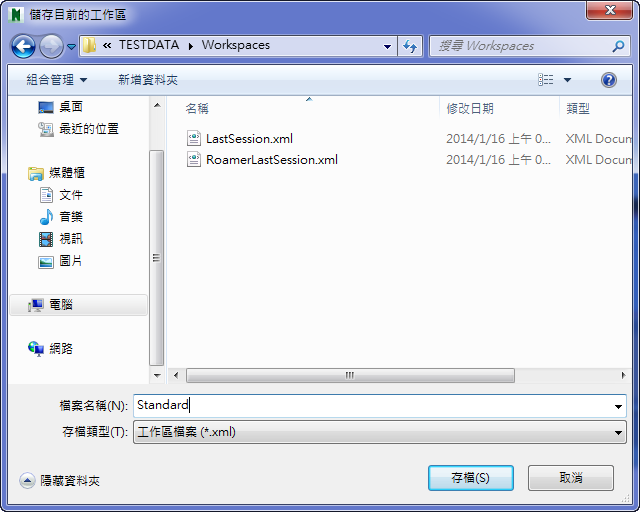 「儲存目前的工作區」