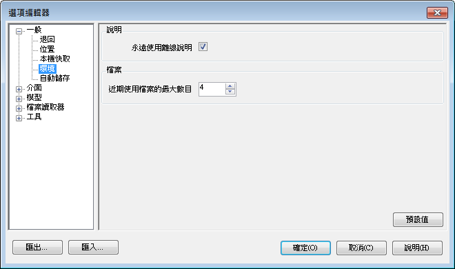 「最近使用的檔案最大數目」