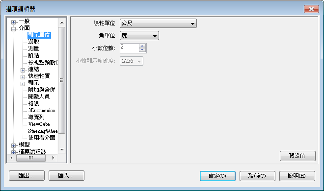 方塊中為單位輸入想要透過介面查看的小數位數。如果選擇的單位為分數單位,而不是十進位單位,則您可以從
