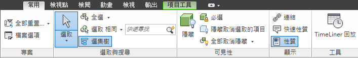 功能區分為多個頁籤,每個頁籤均支援特定的活動。在每個頁籤上,工具會被組合在一起,成為一系列基於工作的面板。其中一些是關聯式頁籤。當您執行某些指令時,會顯示特定的關聯式功能區頁籤,而不顯示工具列或對話方塊。例如,只要您開始在「場景視圖」中選取項目,就會顯示先前隱藏的「項目工具」頁籤。未選取任何項目時,它會再次變成隱藏。