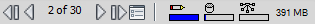 「狀態」列的右下角包含四個效能指示器 (可為您提供關於Autodesk Navisworks在您的電腦上執行狀況的持續反饋)、可切換「專案瀏覽器」視窗的按鈕,以及可在多圖紙檔案中的圖紙/模型之間進行導覽的控制項。