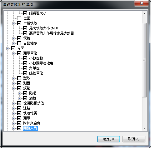 對話方塊中,選取要匯出 (或「連續」) 的所有選項的勾選方塊。如果某個選項無法匯出,則將顯示為灰色。