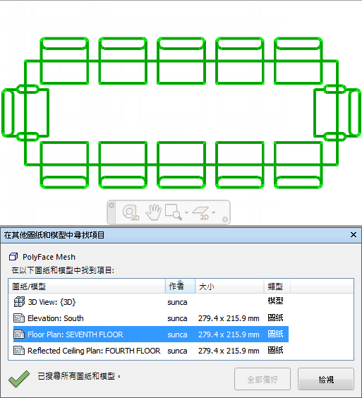 尋找包含選取物件的所有圖紙和模型