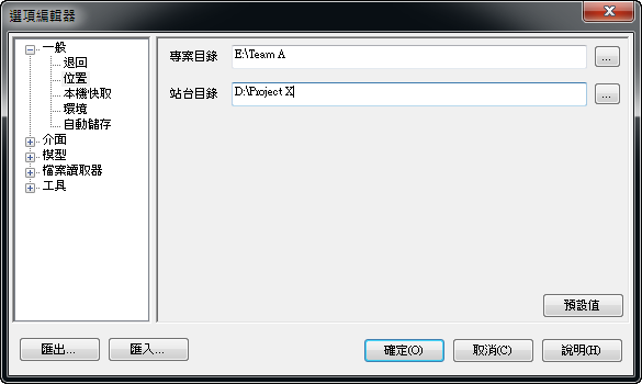 註: 首次執行 Autodesk Navisworks 時,會從安裝目錄選取設定。隨後,Autodesk Navisworks 會檢查本機電腦上的目前使用者設定檔和所有使用者設定檔,然後檢查「專案目錄」和「網站目錄」中的設定。「專案目錄」中的檔案具有最高優先等級。