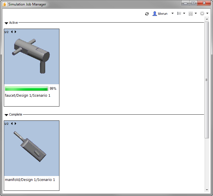Use the Job View to monitor the progress of your CFD Flex jobs. The Job View informs you of the condition of your jobs, and indicates when they have successfully completed. If an error occurs that prevents successful completion, you can access a log file to view an error report.