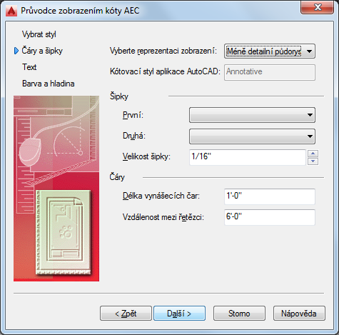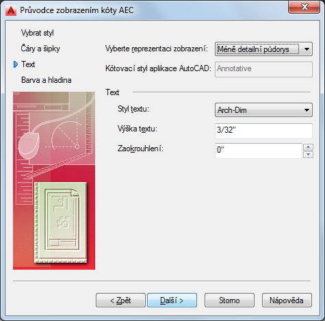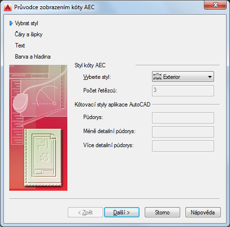 Vyberte kótovací styl AEC, který chcete upravit, a klikněte na tlačítko Další.