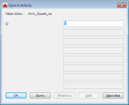 Pomocí tohoto postupu můžete v dialogu Upravit atributy upravit blokovou poznámku nebo změnit její typografické a další vlastnosti.
