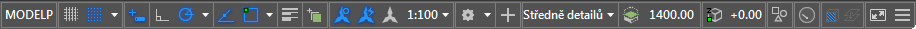 Na stavovém řádku se zobrazuje umístění kurzoru, kreslicí nástroje a nástroje, které ovlivňují prostředí výkresu.
