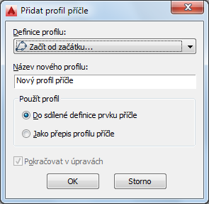 | z existujícího profilu ve výkresu | vyberte existující profil pro Definici profilu a klikněte na příkaz Pokračovat v úpravách. |