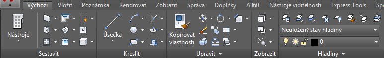 - Statické karty jsou dostupné nezávisle na objektech vybraných na kreslicí ploše. Příkazy na těchto kartách se dříve nacházely v nabídkách a na panelech nástrojů.