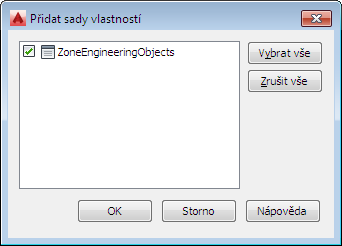 - V dialogu Přidat sady vlastností vyberte položku ZoneEngineeringObjects a klikněte na tlačítko OK.