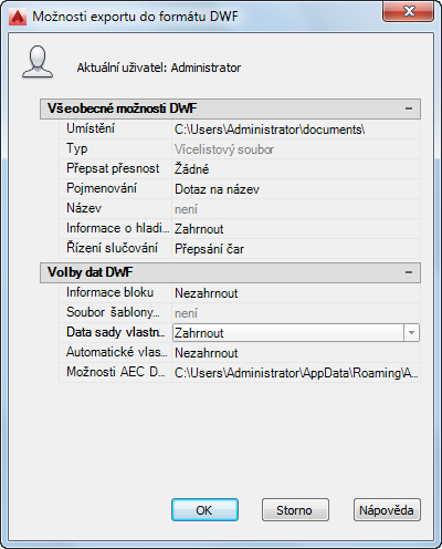 • Klikněte na tlačítko Exportovat Možnosti DWF/PDF.