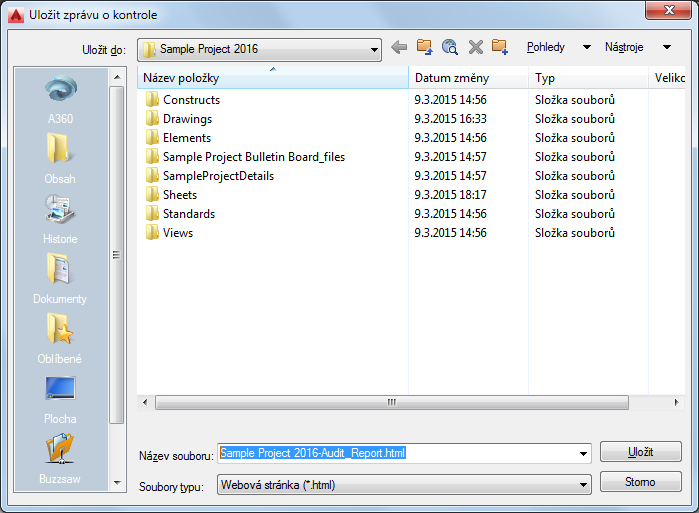 . Po dokončení kontroly je zobrazeno dialogové okno Uložit protokol projektových norem.
