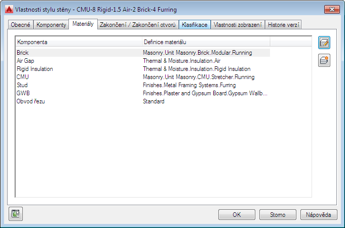 Definice materiálů jsou součástí systému zobrazení v aplikaci AutoCAD Architecture a jsou účinným nástrojem v součinnosti s definicemi stylů a objektů pro účely automatizace zobrazení v půdorysu, řezu a pohledu. Dále je možné používat definici automatické vlastnosti „Materiál“ k navázání materiálových přiřazení (a vlastností těchto materiálů) do tabulky výkazů objektů, které mají přiřazené materiály.