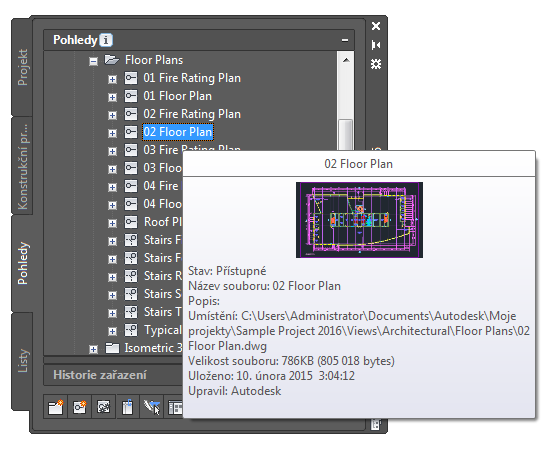 | zobrazit okno Náhled nebo Detail ve spodní části palety Navigátoru projektu | zvolte možnost Okno náhledu/detailu. |