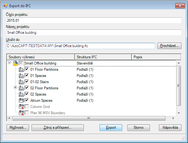 Případně na příkazovém řádku zadejte příkaz ifcexport.