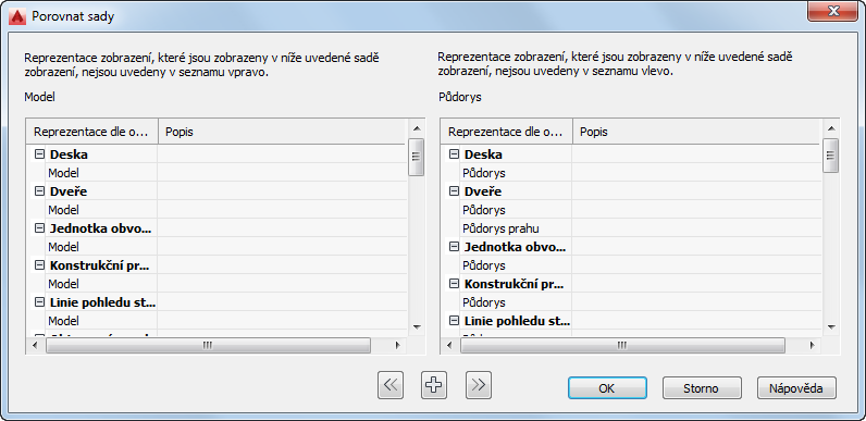 | přiřadit reprezentaci zobrazení na pravé straně do sady zobrazení na levé straně | pod položkou sada zobrazení na pravé straně vyberte název reprezentace zobrazení a klikněte na tlačítko |