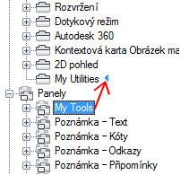 Mezi panely pásu karet se při uvolnění tlačítka ukazovacího zařízení zobrazí vizuální indikátor, který označuje umístění panelu pásu karet.