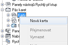 Nová karta pásu (s názvem Nová karta) bude přidána do dolní části uzlu Karty.