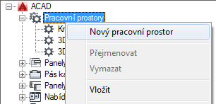 Do dolní části uzlu Pracovní prostory se umístí nový, prázdný pracovní prostor (s názvem Pracovní prostor 1).