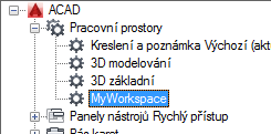 - Na kartě Vlastní v podokně Uživatelské úpravy: <název souboru> klikněte na znaménko plus (+) vedle uzlu Pracovní prostory. Tento uzel se rozbalí.