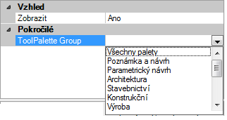 - V poli Skupina palet nástrojů vyberte jednu z uvedených skupin palet nástrojů, která bude asociována s kartou pásu karet.