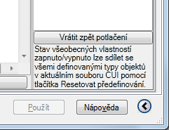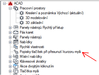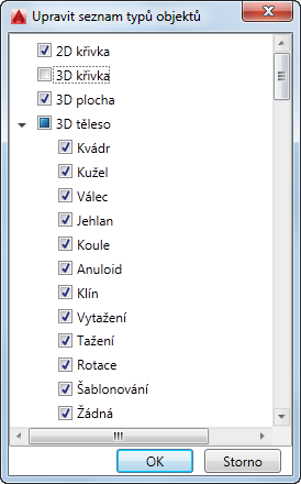 Je-li označena vlastnost, vlastnosti se budou zobrazovat v popisku při přesunutí kurzoru, když bude kurzor v okně výkresu umístěn nad objektem daného typu. Chcete-li odebrat vlastnost zvoleného typu objektů, zrušte zaškrtnutí políčka u dané vlastnosti.