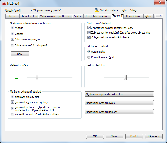 Určuje zobrazení značky, nápovědy a magnetu AutoSnap.
