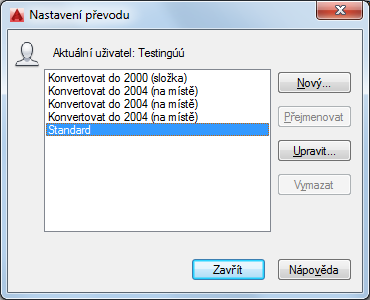 Slouží k vytvoření, přejmenování, úpravě a odstranění nastavení převodu.