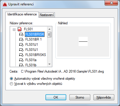 Chcete-li vybrat referenci, která má být editována, vyberte v této referenci objekt. Pokud vyberete objekt, který je součástí jedné nebo více vnořených referencí, jsou v dialogu zobrazeny vnořené reference.