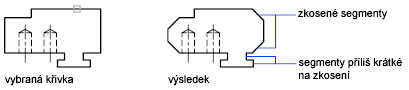 Zkoseny jsou pouze segmenty čáry, které jsou dost dlouhé na to, aby se do nich zkosení vešlo.