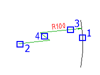 Určuje bod, který nahradí skutečný středový bod oblouku nebo kružnice (2 na obrázku).