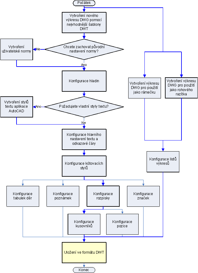 Ve výchozí složce s šablonami aplikace AutoCAD Mechanical se nachází soubor šablony Company XYZ.dwt obsahující všechna nastavení a změny norem. Všechny nově vytvořené výkresy musejí vycházet z této šablony, aby bylo zajištěno dodržení norem kreslení společnosti.