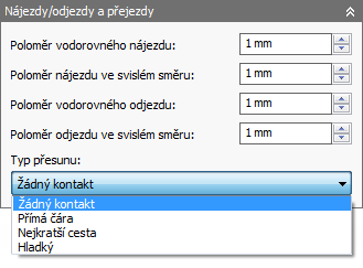 Typ přejezdu se nastavuje na kartě Napojování.