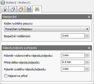 Výška volného prostoru je první výškou, do které se nástroj přesune rychloposuvem při přechodu na začátek dráhy nástroje.