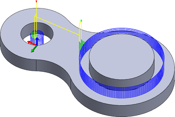 Kruhová strategie se používá při frézování válcových kapes a ostrůvků. Výšky a hloubky se automaticky odvozují z vybrané válcové geometrie, která umožňuje obrábět různé geometrie v jediné operaci.