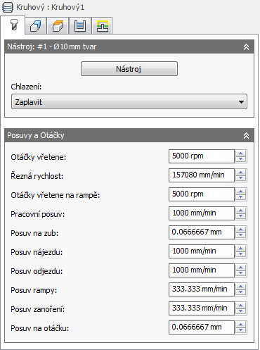 Jedná se o rotační rychlost vřetena při provádění pohybů na rampě.