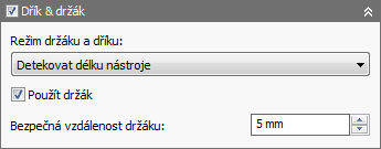 3D strategie v aplikaci Inventor HSM Express plně podporují uživatelem definované dříky a úchyty. Při používání nástroje s držákem je možné vybrat si v závislosti na strategii obrábění jeden z pěti různých režimů dříku a držáku. U dříku i držáku nástroje lze řešit kolize a lze jim přiřadit vlastní bezpečné vzdálenosti.