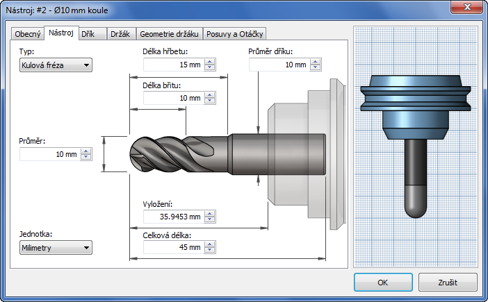 Pokud je nástroj při generování trajektorie nástroje s aktivní možností Detekovat délku nástroje příliš krátký, zanese se do protokolu následující zpráva: Upozornění: Aby se zabránilo kolizi úchytu se součástí, délka nástroje byla aktualizována z 25 mm na 35,9453 mm.
