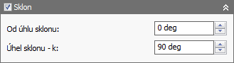 Omezení spádu je určeno nastavením parametrů Od úhlu spádu a K úhlu spádu, které se nacházejí v části Spád na kartě Geometrie.