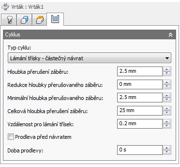 Výběr vrtacího cyklu rozhoduje o tom, které parametry lze určit pro vrtací operaci.