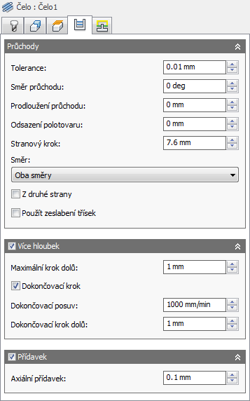 U dokončovacích operací je výchozí hodnota 0 mm/0", tj. nebude ponechán žádný materiál.