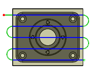 Pokud je vybrána možnost Oba směry, aplikace Inventor HSM Express bude ignorovat směr obrábění a propojí průchody ve směrech, které povedou k nejkratší dráze nástroje.
