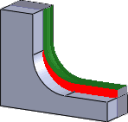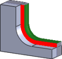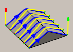 V případě povrchů, které nejsou přesně vodorovné, bude aplikace Inventor HSM Express interpolovat mezi axiální a radiální (stěna) hodnotou přídavku, aby se materiál polotovaru zbylý v axiálním směru na těchto površích mohl lišit od určené hodnoty v závislosti na spádu povrchu a hodnotě radiálního přídavku.
