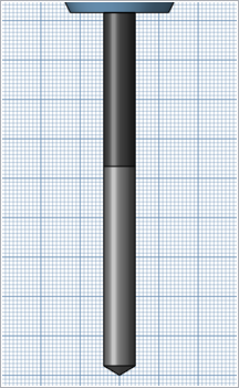 knihovně nástrojů se při výběru konkrétního nástroje zobrazí jeho náhled. Vzdálenost mezi čarami mřížky je pevná a umožňuje rychle získat hrubý odhad velikosti nástroje.