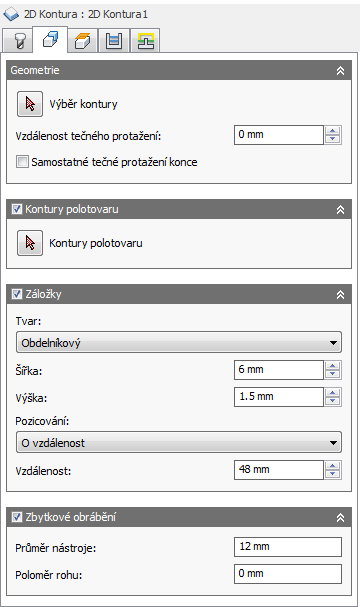 U dokončovacích operací je výchozí hodnota 0 mm/0", tj. nebude ponechán žádný materiál.