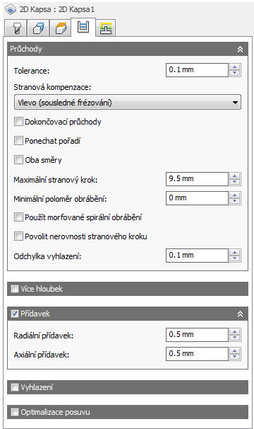 Kladný přídavek – určuje množství materiálu polotovaru zbylého po operaci, který má být odebrán následnými hrubovacími či dokončovacími operacemi. U hrubovacích operací se ve výchozím nastavení ponechá malé množství materiálu.