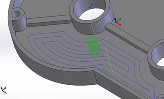 Definici úhlu spádu lze použít k obrábění prvků pomocí 2D strategie, které by jinak vyžadovaly 3D strategii.