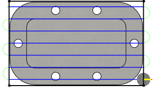 Strategie Plocha umožňuje zadat další hodnotu odsazení pro automatické nebo ručně zadané kontury materiálu v nastavení Odsazení materiálu.