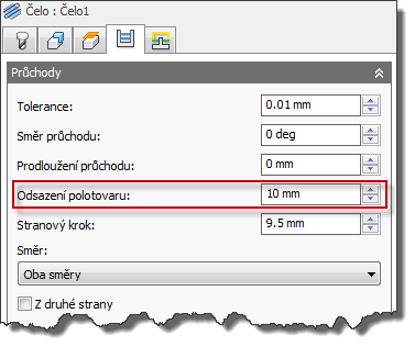 Nastavení Odsazení materiálu na kartě Průchody